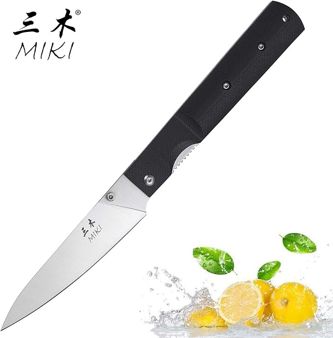 Miki 440A Stainless Steel Blade Japanese Kitchen Chef Folding Pocket Knife for Camping, Petty Fruit Paring Peeling Small Drop Point