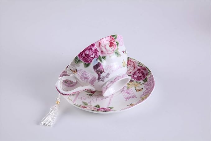 • Cups and Saucers set include 4 cups and 4 saucers, Blue, Teal, Beige and Pink 4 colours mixed in one set. Rose Blue, Rose Pink, Butterflies and Bird Rose Butterfly options have 4 teacups and saucers in the same colour.