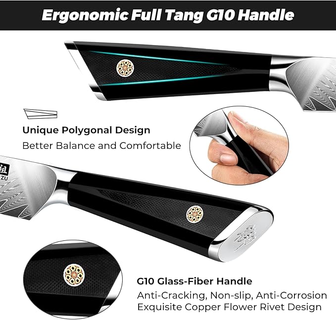 • 【Fiberglass G10 Handle, Comfortable Grip】The paring knife handle is made of frosted G10 fiberglass, which is stronger and more comfortable to hold than wooden handles. Additionally, it has an excellent grip and balance, making it a professional kitchen knife with an ergonomic design. It's easy to peel/cut fruit, and you can even use it as a utility knife with multiple uses.