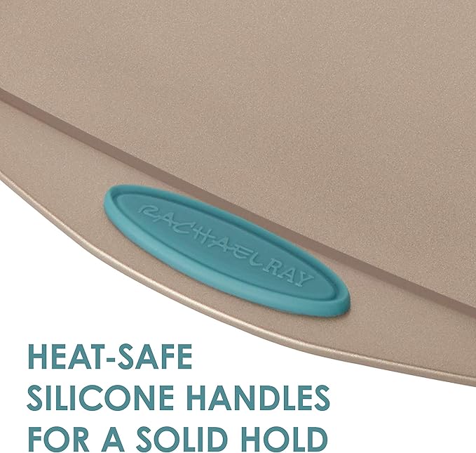 • EASY HANDLING NONSTICK BAKEWARE: Oven safe to 450 degrees F (lid excepted), wide pan handles with colorful heat-safe silicone grips offer comfortable grasp even with potholders