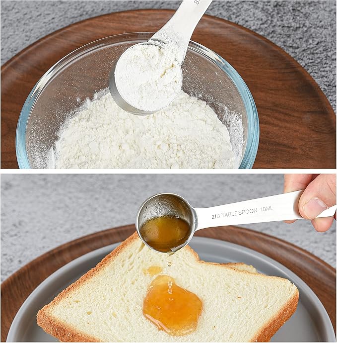 • ENGRAVED MEASURING MARKINGS – Every cup in this set <br>has the accurate measurements size in US and Metric <br>engraved on the handle clearly, what will help you reduce <br>any measuring errors for cooking or baking!
