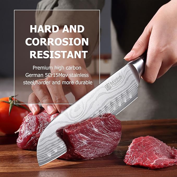 PAUDIN Santoku Knife, 7 Inch Kitchen Knife, Ultra Sharp Edge - Forged High Carbon German Stainless Steel, Professional Chef Knife with Ergonomic Handle, Gifts for Men and Women