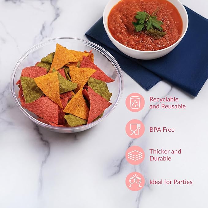 • Spacious 150 Oz Capacity: Each bowl holds generous portions of salads, chips, pasta, desserts, and more. Ideal for serving large groups at events, barbecues, game nights, or celebrations