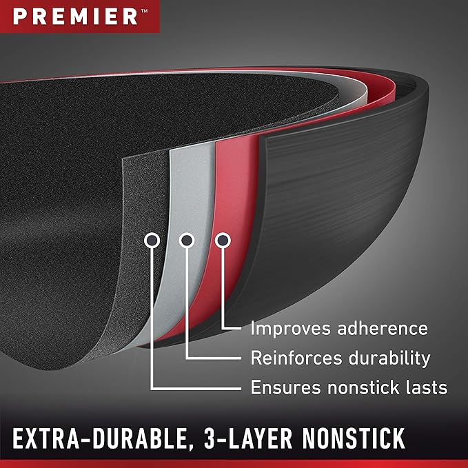 • Metal-utensil safe, with a durable, 3-layer, hard-anodized aluminum interior