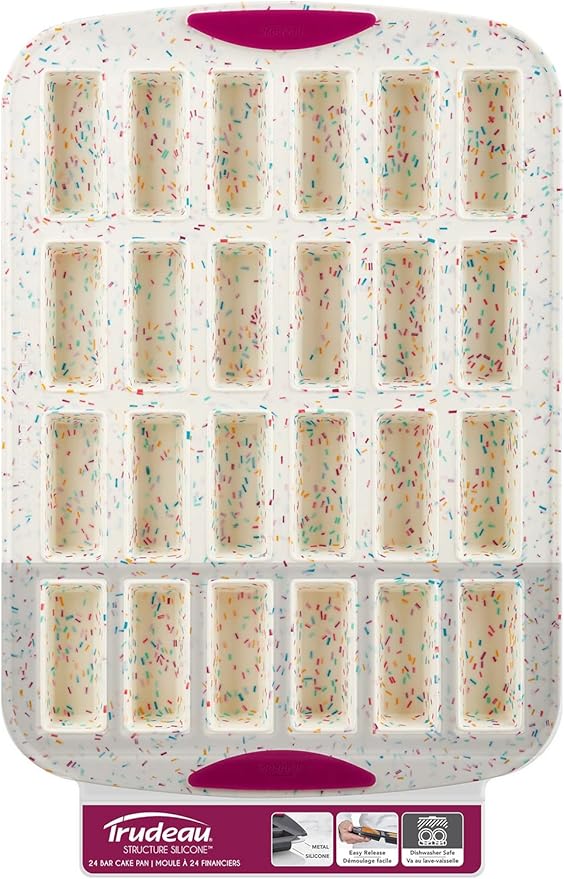 Trudeau 24 Slot Mini Bar Pan – Premium Confetti White Silicone Bakeware with Steel-Reinforced Rim – Nonstick, BPA-Free Brownie, Blondie, Snack Bar & Mini Cake Mold – Oven, Freezer & Dishwasher Safe