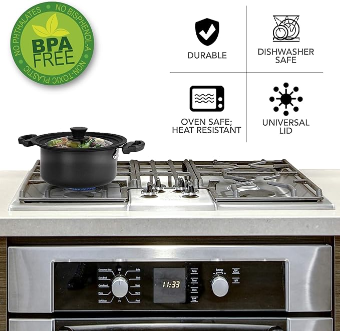 • Food Grade Silicone: Our universal lids are 100% non-toxic, chemical free, and BPA-free. The durable material won't create stains or form rust like a steel cover. They're also odor resistant, keeping the wonderful aroma of your food intact.