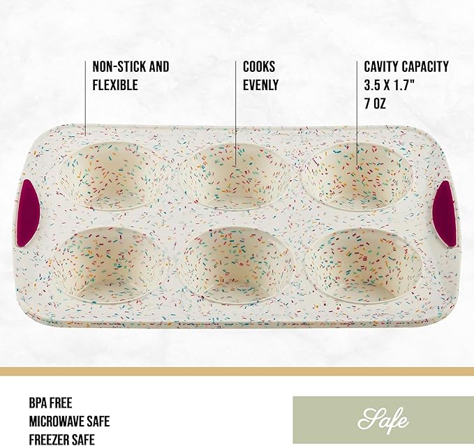 Trudeau Structure White Confetti 6-Cup Jumbo Muffin Pan – Premium Steel-Reinforced Silicone Bakeware, Nonstick BPA-Free Cupcake & Muffin Mold – Oven, Freezer & Dishwasher Safe