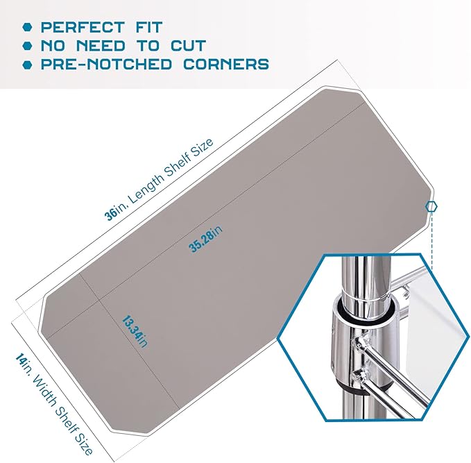 • 【Value Pack】Set of 5 shelf liners (13.34" x 35.28"), fits most brands of 14" x 36" wire shelf. The 4 corners with custom cutouts perfect fit with standard wire shelving system.