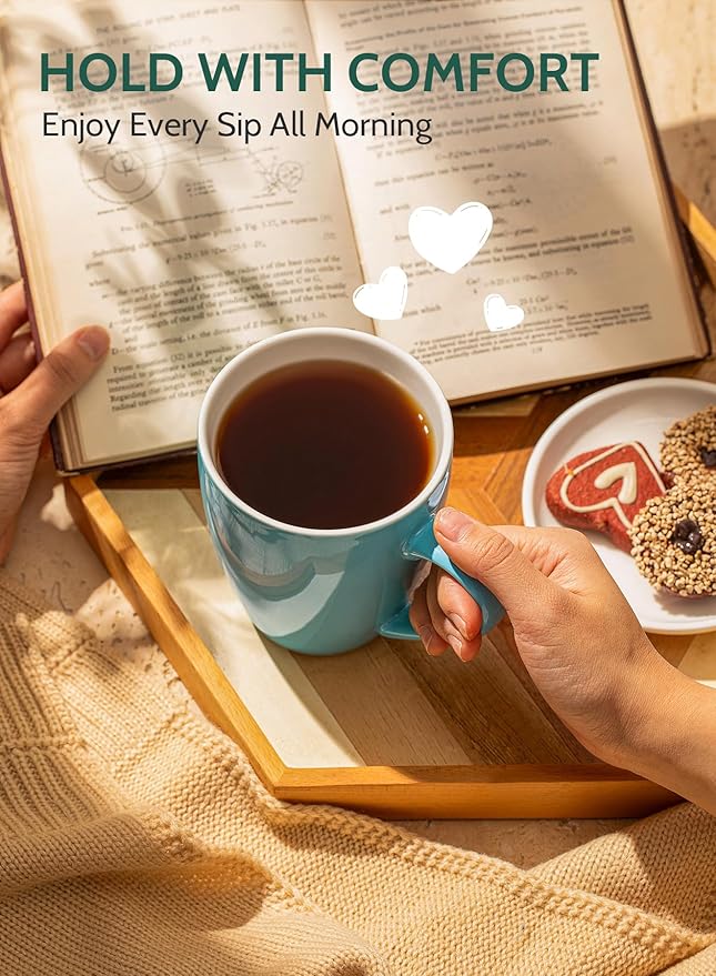 • ENJOY YOUR DRINK WITH EASE: Our coffee mugs redefine comfort with a spacious design and a large handle, ensuring a cozy grip. Savor the enhanced taste of your tea or coffee as the mug sits comfortably in your hands. Crafted with ergonomic precision, our mugs offer a stylish and secure grip, the wide mouth is perfect for indulging in hot lattes, complemented by a large handle that holds 16 ounces of goodness. Choose ease and style for every sip.