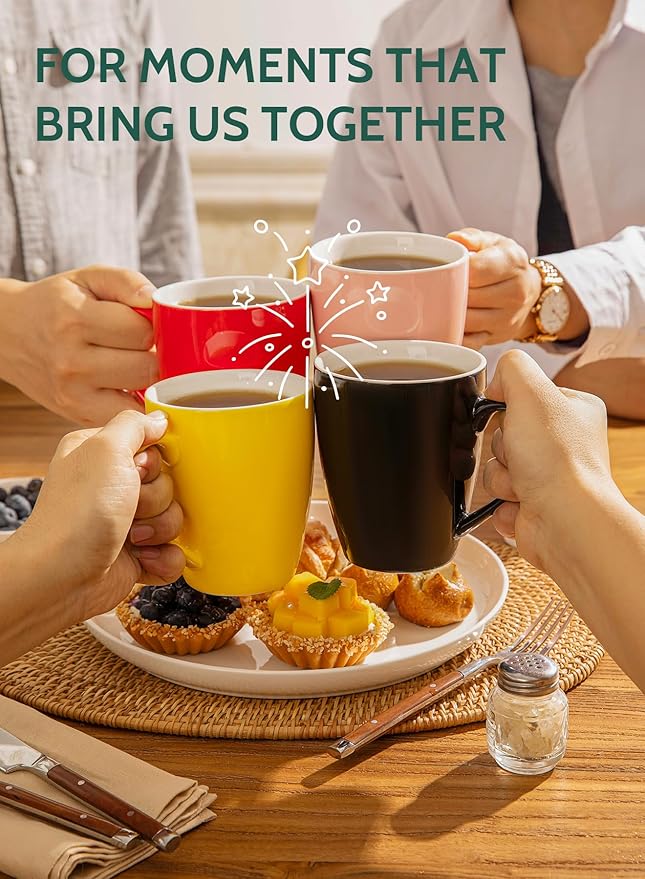 - DAILY DELIGHT IN EVERY SIP: Our elegant mugs, with a smart 16 oz size(top to the rim), offer the perfect weight and sturdiness for your daily caffeine fix. Crafted with commercial-grade quality, this set ensures your morning brew tastes even better. Whether it's iced coffee, latte, or tea, enjoy every sip with our chic design, adding sophistication to your kitchen.