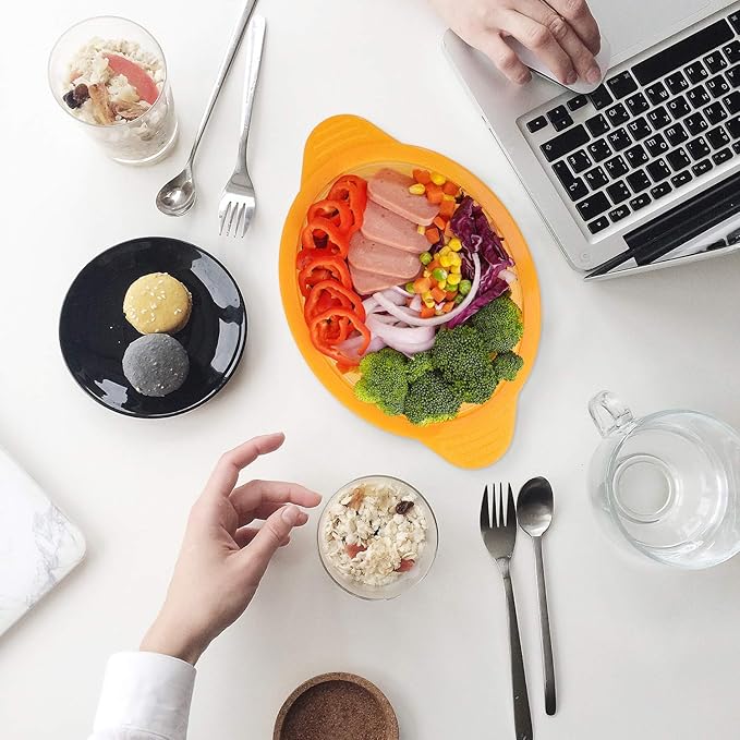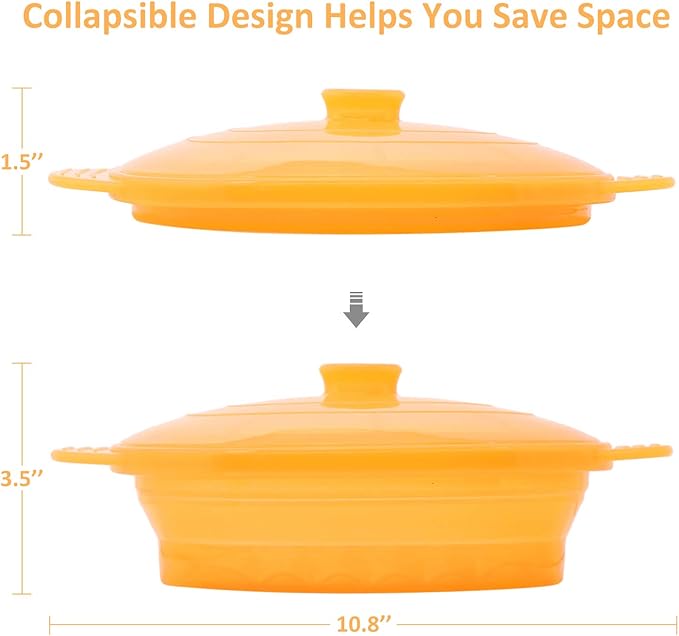 • COLLAPSIBLE DESIGN - The collapsible design of the steamer bowl makes it easy to store. Besides, you can use it as a normal food prep containers, and if you press it down, it can be used as a plate. Our silicone steamer allows anyone to quickly and easily steam fresh or frozen vegetables for a quick, delicious, healthy meal.