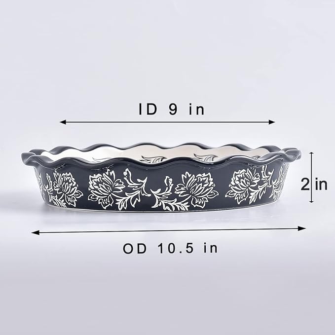 • 【CONVENIENT CLEANING】 Whether you want to clean the pie dish by hand or with your dishwasher, it won't matter because the smooth porcelain texture makes cleanup a breeze. and It is suitable for microwave, freezer and oven.