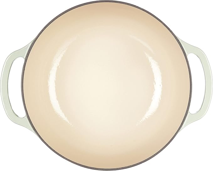 • EASY TO COOK AND CLEAN: The porcelain enameled interior has a smooth finish that minimizes sticking, promotes caramelization and resists staining. Although enameled cast iron is dishwasher safe, hand washing with warm soapy water and a nylon scrub brush is recommended to keep your Dutch Oven in tip top shape