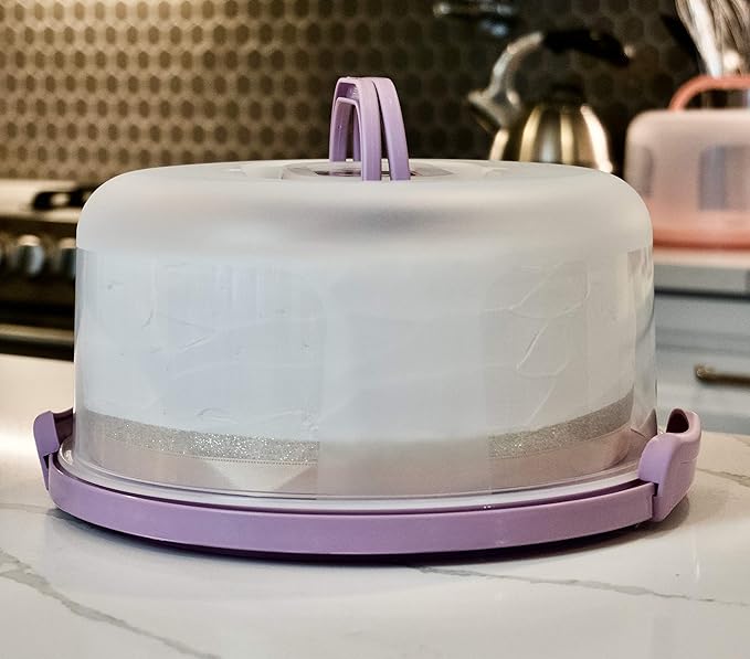 Round Cake Carrier Two Sided Cake Holder Serves as Five Section Serving Tray, Portable Cake Stand Fits 10 inch Cake, Cake Box Comes With Handle, Cake Container Holds Pies (Lilac)