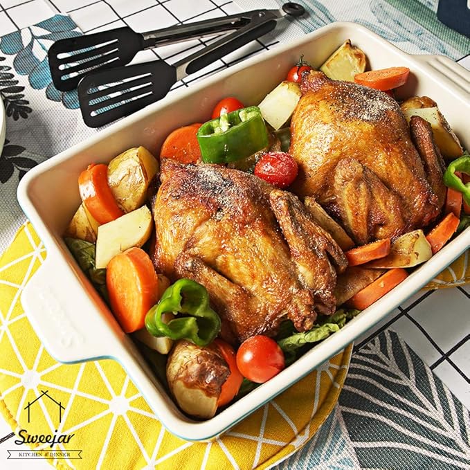 • Easy to Hold:The Sweejar casserole dish features a stylish and elegant rectangular shape with double handles, making it easy to transport your dishes from the oven to the table. Impress your guests with this charming addition to your kitchen and dining table