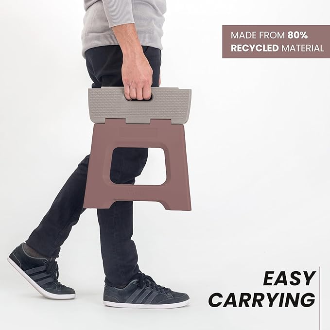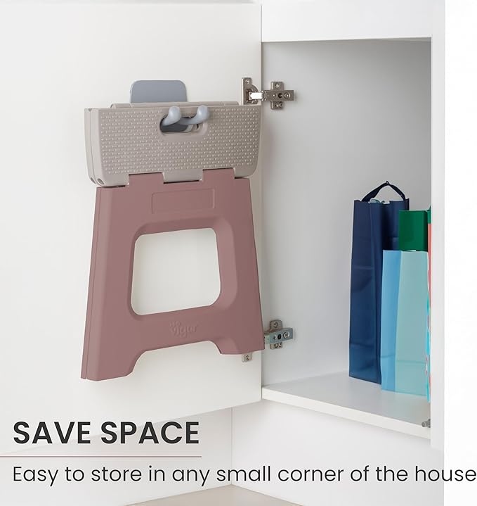Vigar Compact Step Stool Foldable, 10-1/2-inch Step Stools for Adults up to 330 Pound, Lightweight Stool, Non-Slip Folding Step Stool, Raisin in the Sun