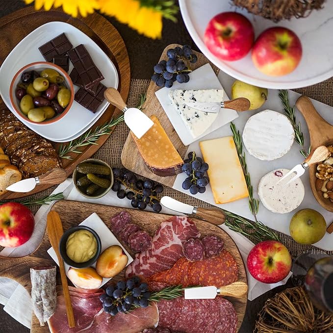 • 【Elegant Design】Each cheese knife features a high quality teak wood handle and stainless steel blade.Good size and sharp enough on the edge to be able to slicing, spreading and serving soft and hard cheeses.