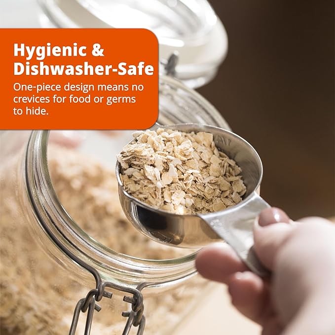 • Heavy-Duty 18/8 Stainless Steel – Rust-proof, bend-resistant construction that outlasts flimsy plastic or cheaper 18/0 steel sets. Perfect for thick ingredients like brown sugar or honey.
