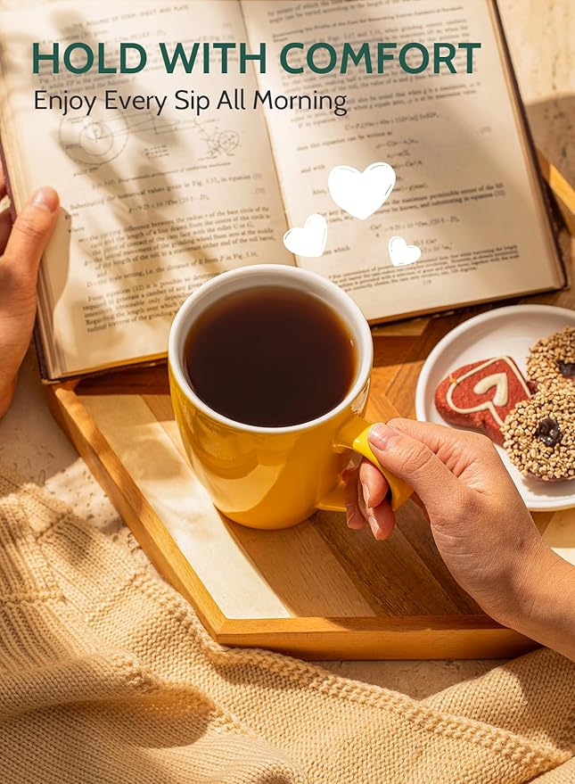 - ENJOY YOUR DRINK WITH EASE: Our coffee mugs redefine comfort with a spacious design and a large handle, ensuring a cozy grip. Savor the enhanced taste of your tea or coffee as the mug sits comfortably in your hands. Crafted with ergonomic precision, our mugs offer a stylish and secure grip, the wide mouth is perfect for indulging in hot lattes, complemented by a large handle that holds 16 ounces of goodness. Choose ease and style for every sip.