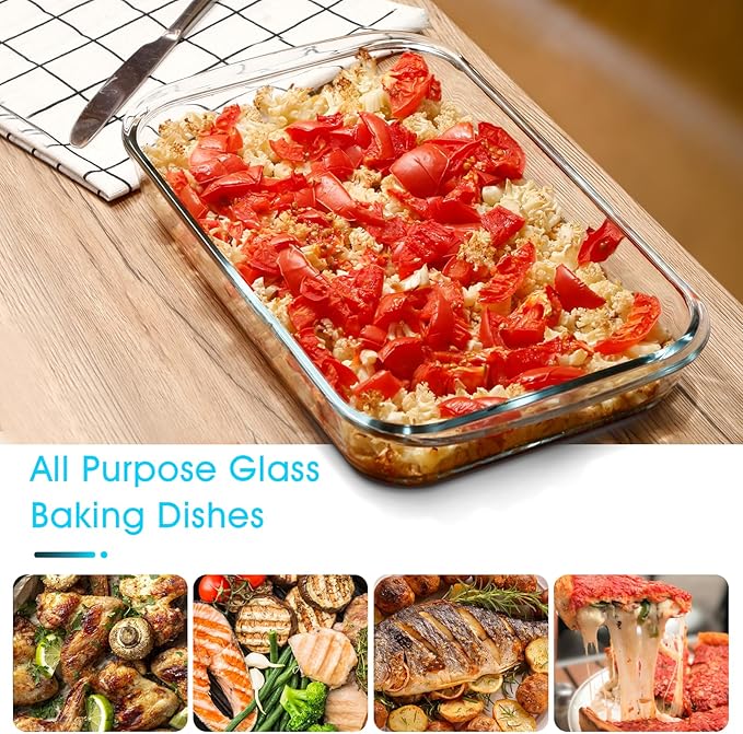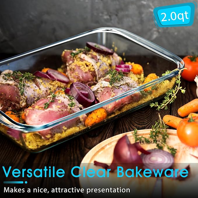 • Compliment Your Baking Arsenal: The clear baking pan makes a nice, attractive presentation,it also lets you monitor the cooking process and easily identify leftovers. This glass bakeware for oven is highly scratch resistant and maintain their hygienic and transparent properties as throughout their service life.