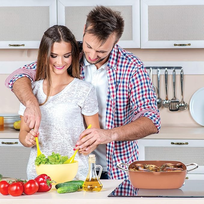 • Versatile Square Copper Pot Set for All Stovetops: Use our 5 quart copper pan on gas, electric, or induction stoves. Ceramic-coated and oven-safe (lid not included), ideal for everyday cooking needs.