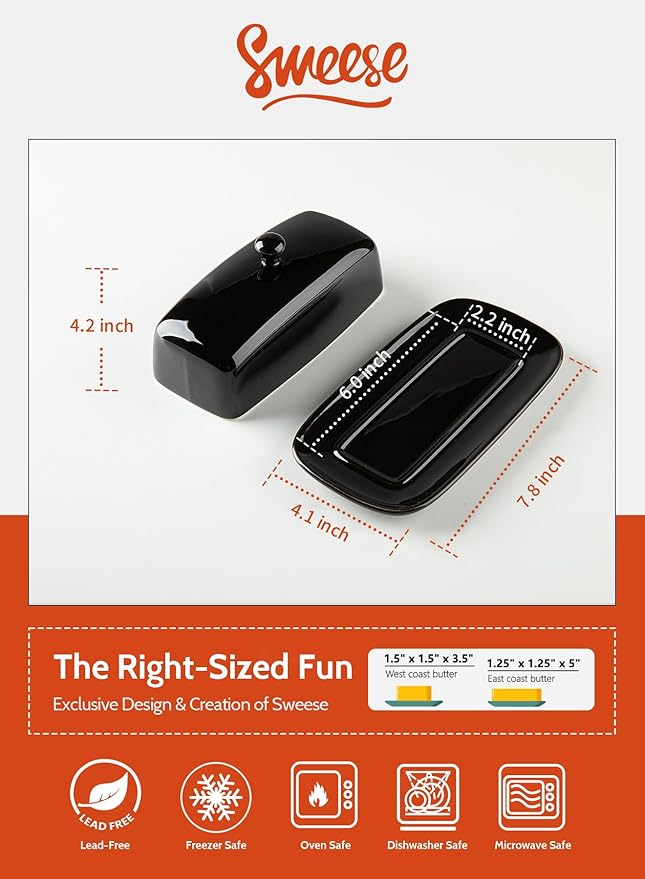 • Elegant & Minimalist Style - The Sweese butter dish is clean, pure, and has a smooth and shiny appearance, which complements the kitchen. The elegant and simple curved design makes the butter keeper look very high-end and fits perfectly with any decoration style. Butter dishes are available in various colors and can be easily combined with other cookware to create a rich and harmonious color ambiance.