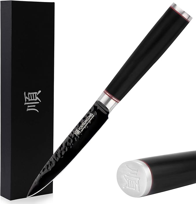 YOUSUNLONG Kitchen Utility Knife 5 Inch Multi-purpose knife Hammered Japanese AUS8 Steel - HRC Steel - Leadwood Handle