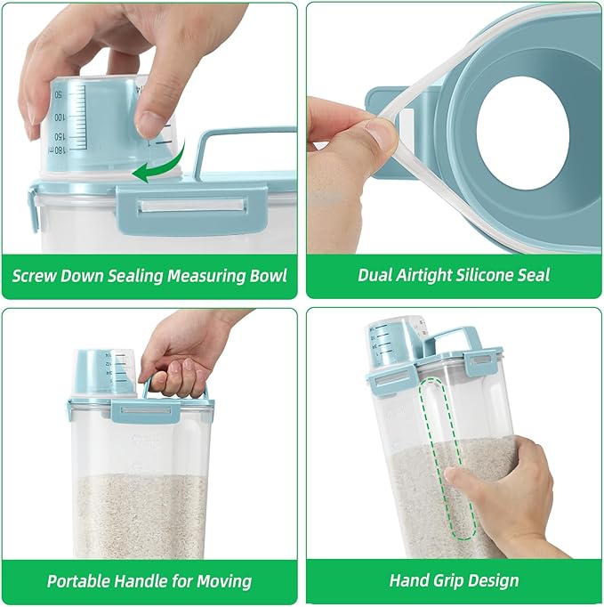 TBMax Rice Storage Container - 5 Lbs Flour Container Cereal Dispenser with Measuring Cup, Airtight Dry Food Container Bin for Kitchen Pantry Storage Organization