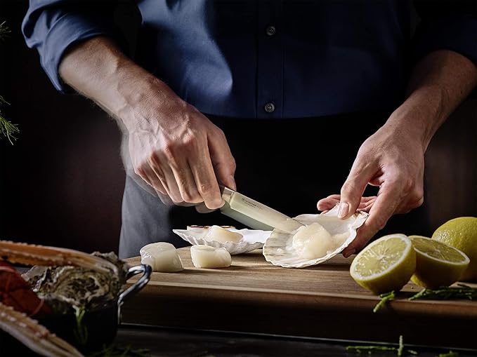 • The half bolster allows for the knife to be honed and sharpened the entire length of the blade and the heel bolster provides added balance