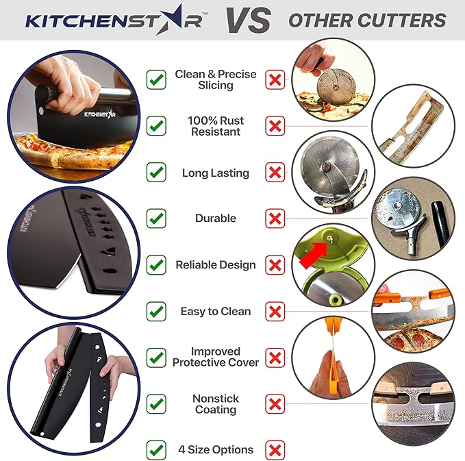 • Protective Cover: The included protective cover enhances safety of this pizza rocker, allowing for secure storage and preventing accidental cuts, making this pizza slicer safe to handle