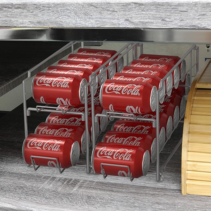 Simple Houseware Stackable Front Loading Beverage Can Dispenser Rack, Silver - 2 Pack