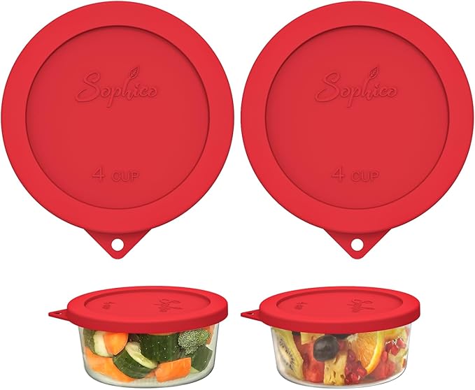 Sophico 4 Cup Round Silicone Storage Cover Lids Replacement for Anchor Hocking and Pyrex 7201-PC Glass Bowls (Container not Included) (Red-2 Pack)