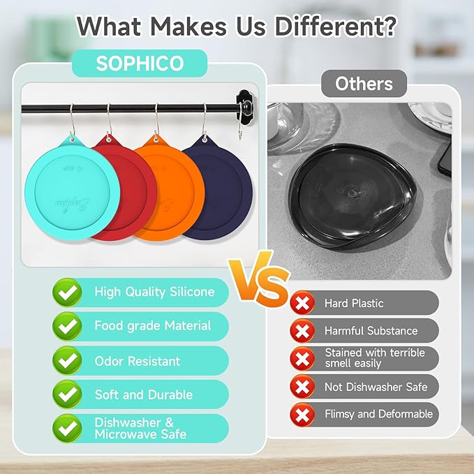 • RELIABLE SILICONE - Made from premium food grade silicone, which is odorless, non-toxic and BPA-Free. Compared with plastic lids, our silicone lids will not warp and crack over time of use.