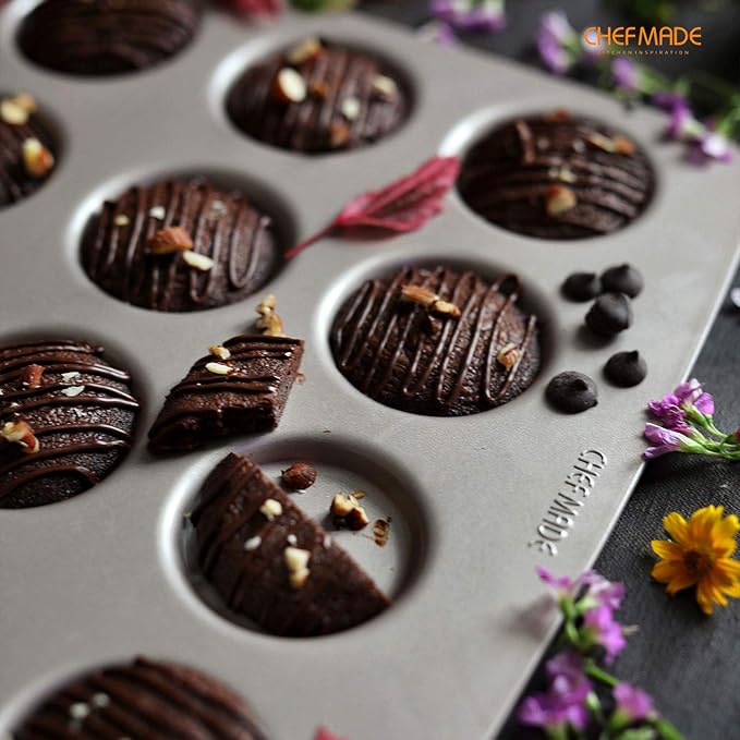 CHEFMADE Whoopie Cake Pan, 12-Cavity 2.2" Diameter Non-Stick Muffin Pan Whoopie Cookie Biscuit Bakeware for Oven Baking (Champagne Gold)