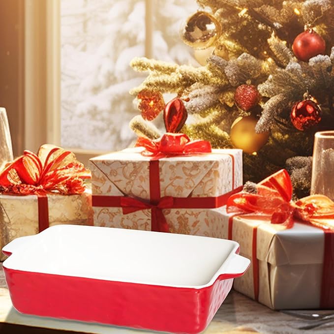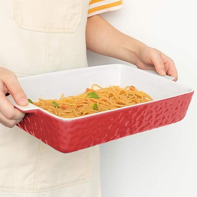 4 QT Baking Dish, Casserole Dishes for Oven, 9x13 Baking Pan with Handles, Lasagna Pan Deep, Ceramic Casserole Dish Oven Safe for Baking, Lasagna, Kitchen, Wedding Gift (Red)