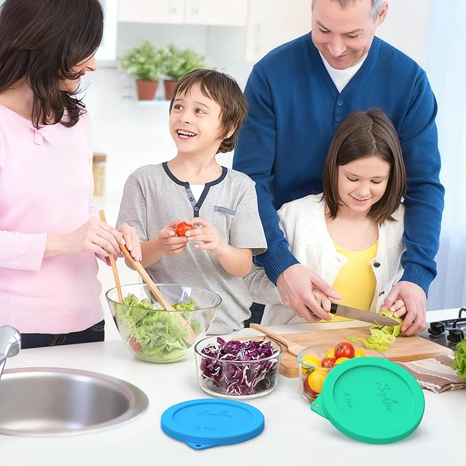 Sophico 2 Cup Round Silicone Storage Cover Lids Replacement for Pyrex 7200-PC and Anchor Hocking Glass Bowls (Container not Included) |Green-Blue 4 Pack |