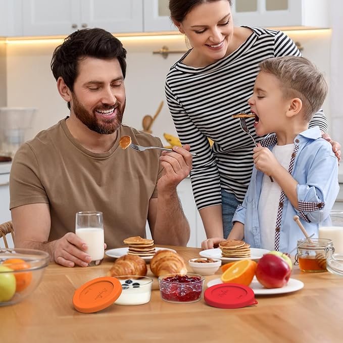 Sophico 1 Cup Round Silicone Storage Cover Lids Replacement for Anchor Hocking and Pyrex 7202-PC Glass Bowls (Container not Included) (Orange - 2 pack)