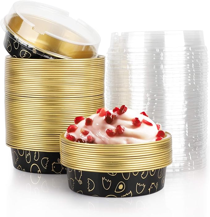 • 【Perfect Size】4.7 inch top length with lid, 4 inch bottom length, 2 inch height with lid, perfect size to use, available with many different colors, provide more choices for you. Package: 50 cake pans and 50 lids.