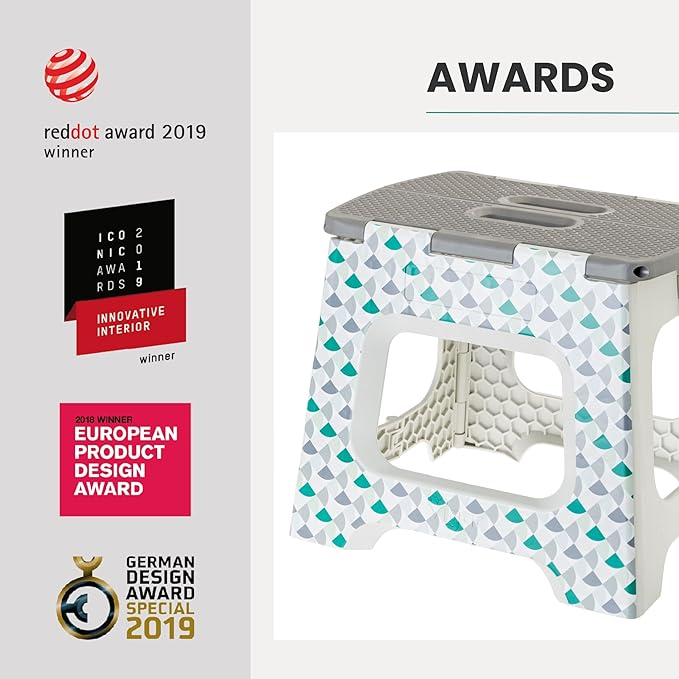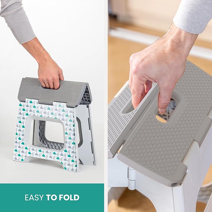 Vigar Compact Step Stool Foldable, 10-1/2-inch Step Stools for Adults up to 330 Pound, Lightweight Stool, Non-Slip Folding Step Stool, Geometric Body