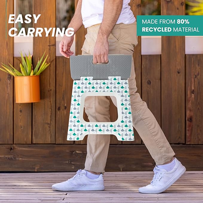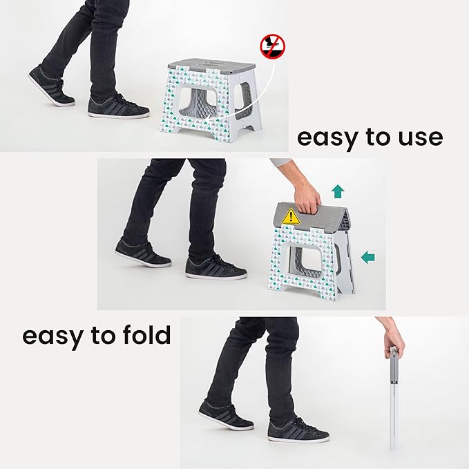 • Multipurpose Step Stool: This foldable stool helps reach high places like counters, cabinets, and shelves. Ideal shower stool for inside shower, bathroom stool, step stool for bed, closet step stool, folding camping stool, and utility stool.