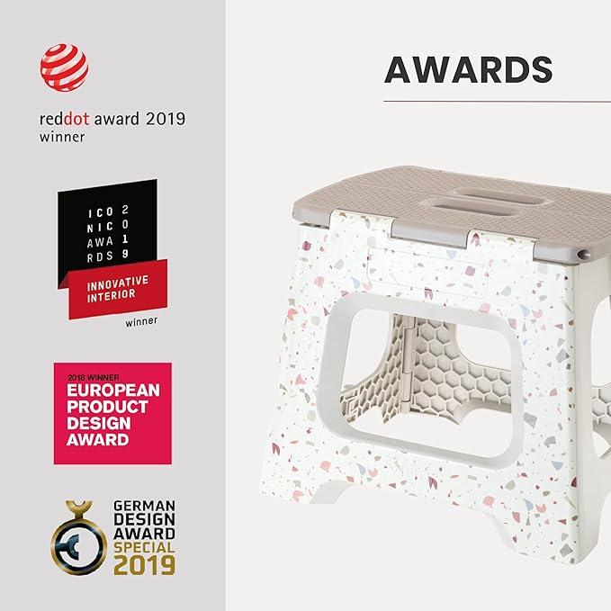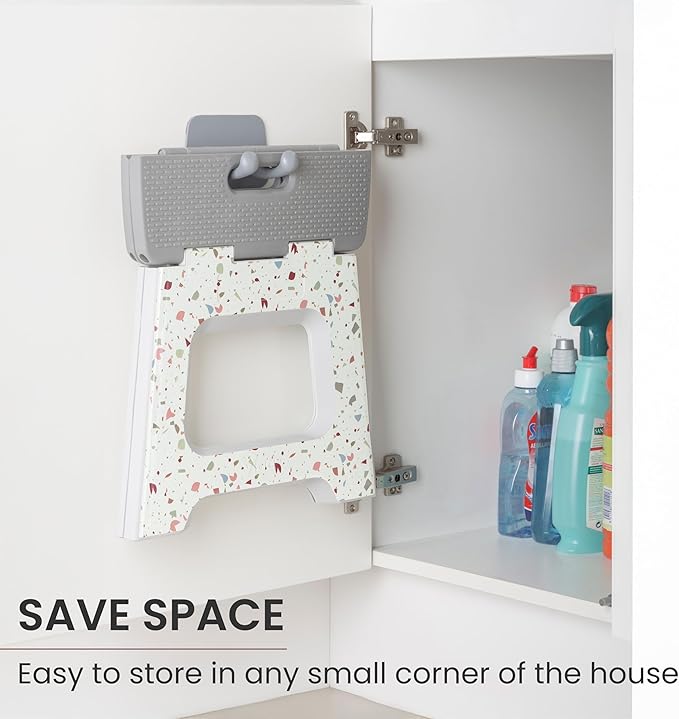 Vigar Compact Step Stool Foldable, 10-1/2-inch Step Stools for Adults up to 330 Pound, Lightweight Stool, Non-Slip Folding Step Stool, Terrazzo Body