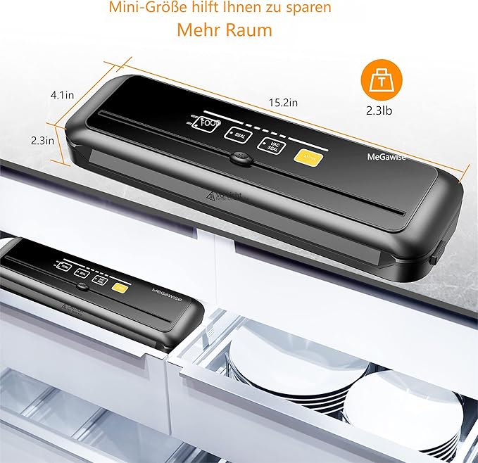 • Mega Power – 80kPa Suction for Efficient Sealing: Preserve your food effortlessly with our 80kPa powerful suction and high-quality heating wire. The MegaWise vacuum sealer ensures an airtight seal in just 10-20 seconds, keeping food fresh up to 5 times longer. Say goodbye to freezer burn and food waste from ice buildup.