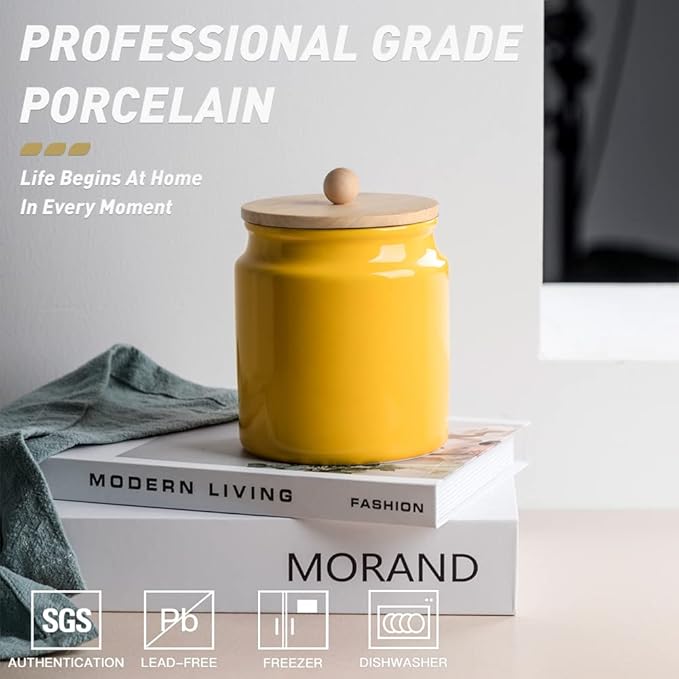 Sweejar Ceramic Kitchen Canisters, 28 FLOZ Porcelain Food Storage Jar with Airtight Seal Wooden Lid, Home Container Serving for Coffee Beans, Tea-leave, Sugar, Salt and More, Tool Bucket (Yellow)