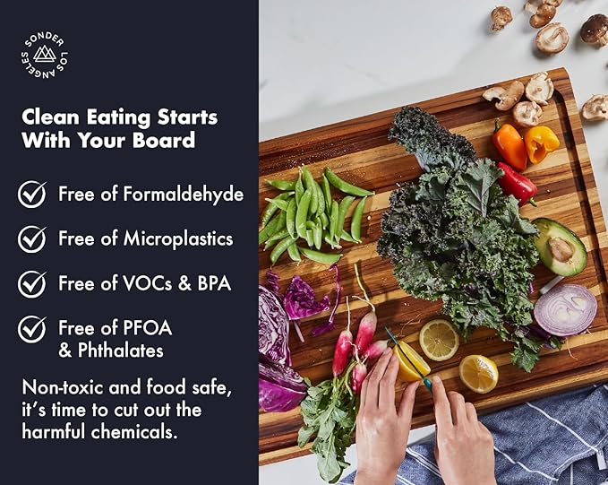 Sonder Los Angeles, XXL Thick Edge Grain Teak Wood Cutting Board for Kitchen with Juice Groove, 23x17x1.5 Charcuterie Wooden Board in Large (Gift Box Included)
