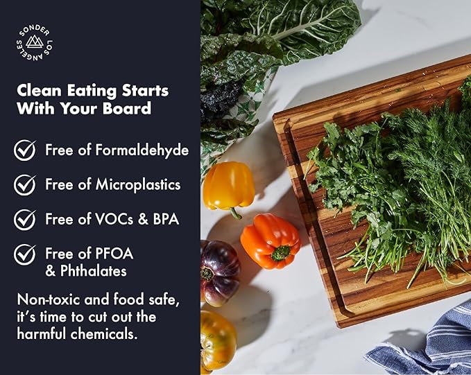 • DURABLE EDGE GRAIN TEAK – Known for outstanding moisture resistance and strength due to its natural high oil content, Teak is an ideal material for cutting boards. The wood is hard enough to allow for clean cuts, but still soft enough to maintain a knife’s edge. With proper care and monthly oiling, Bradbury will outlast most items in your kitchen. Our Teak is responsibly sourced from sustainable plantations. Finished safely. Free of BPA, phthalates, and formaldehyde.