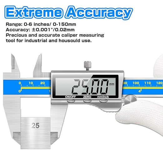 • PRECISION AND ACCURACY: You can measure thickness, width or depth down to 0.001 inch with our caliper. This level of precision is required if anything needs to be correctly fitted and sealed. It allows you to make pieces that fit perfectly and leave no room for error. measurement accuracy: 0.02mm/ 0.001 inch