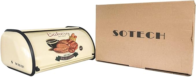 SOTECH Bread Box Kitchen Metal Container for Storage Bin Countertop Keeper Rustic Holder Vintage airtight Counter with Roll Top Farmhouse Bread Boxes