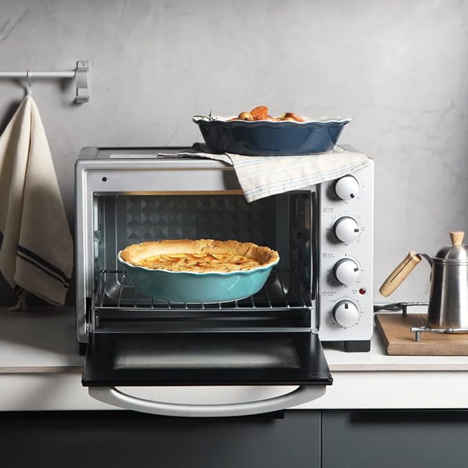 Sweejar Ceramic Pie Pan - 10 Inch Round Baking Dish for Dinner, Non-Stick with Soft Wave Edge for Apple, Pumpkin, Pot Pies (Turquoise)