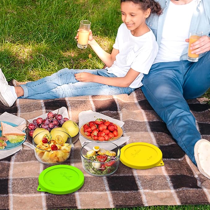 Sophico 4 Cup Round Silicone Storage Cover Lids Replacement for Anchor Hocking and Pyrex 7201-PC Glass Bowls (Container not Included) (YellowGreen-6pack)