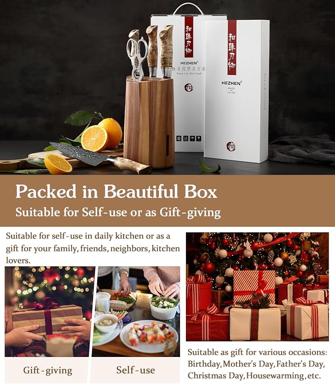 • [Reliable Quality Assurance] Buying HEZHEN knife directly has a lifetime warranty guarantee.If there are any problems with our items or services,please do not hesitate to contact us. HEZHEN brand knives are always recommended by well-known chefs.